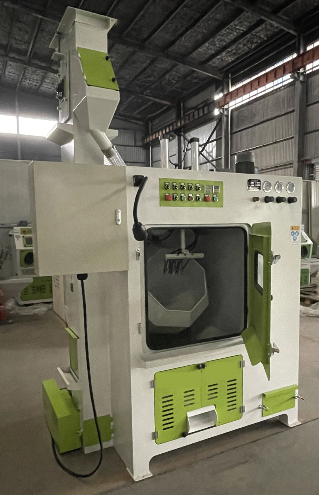 3. 有效地利用了空氣對流原理,采用雙管進氣,使工作倉噴砂視線更加清晰及提高了空氣排放標準;