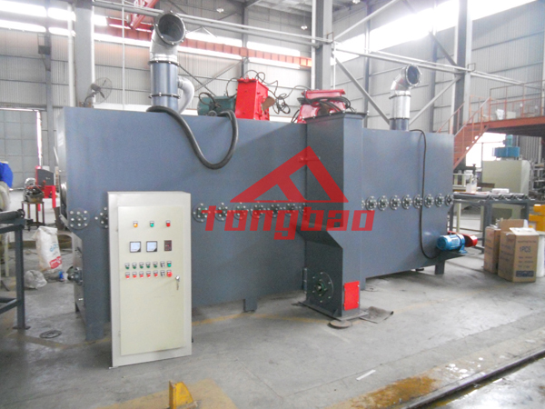 杭州某石材廠家拋丸生產(chǎn)線裝車發(fā)貨,該拋丸生產(chǎn)線采用輥道通過式輸送,內(nèi)部?jī)膳_(tái)拋丸機(jī)同時(shí)拋射,覆蓋面積大,拋射均勻,效率高。