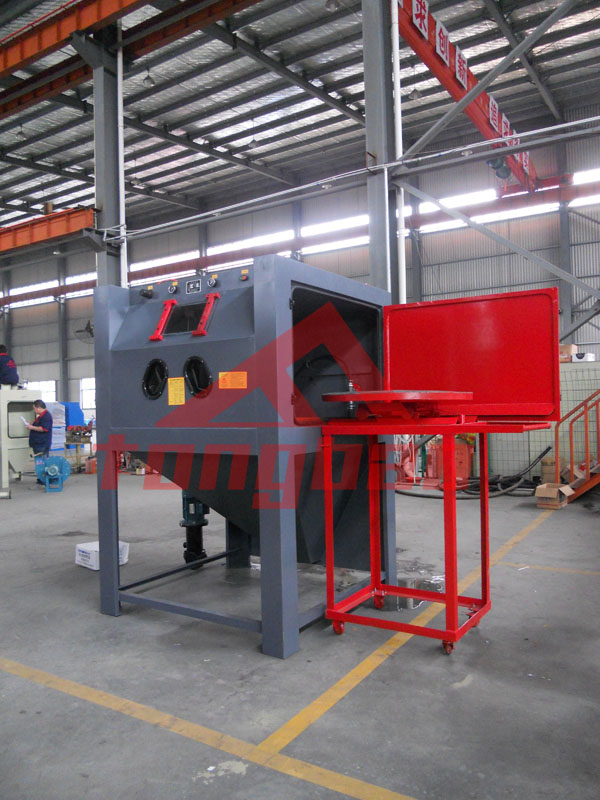 推車轉(zhuǎn)臺(tái)液體手動(dòng)噴砂機(jī)順利完工